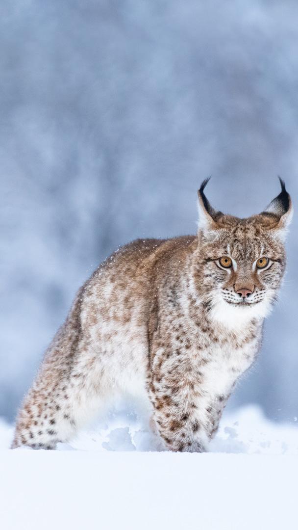 Um errante bigodudo Lince-euroasiático na neve (© Jan Stria/Shutterstock)