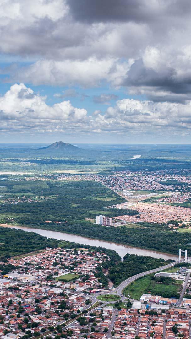 A cidade verde e amarela Vista aérea da cidade de Cuiabá e do rio Cuiabá, Mato Grosso (© Lucas Ninno/Getty Images)