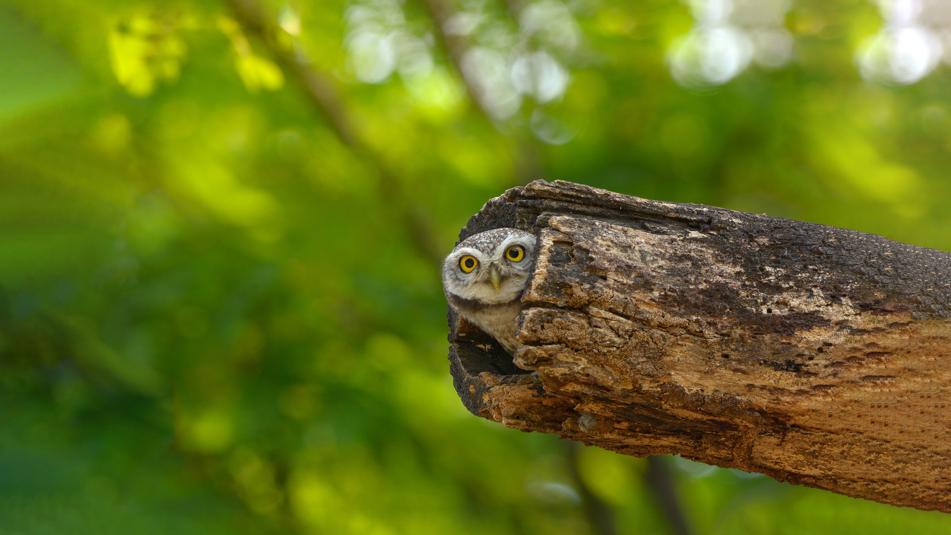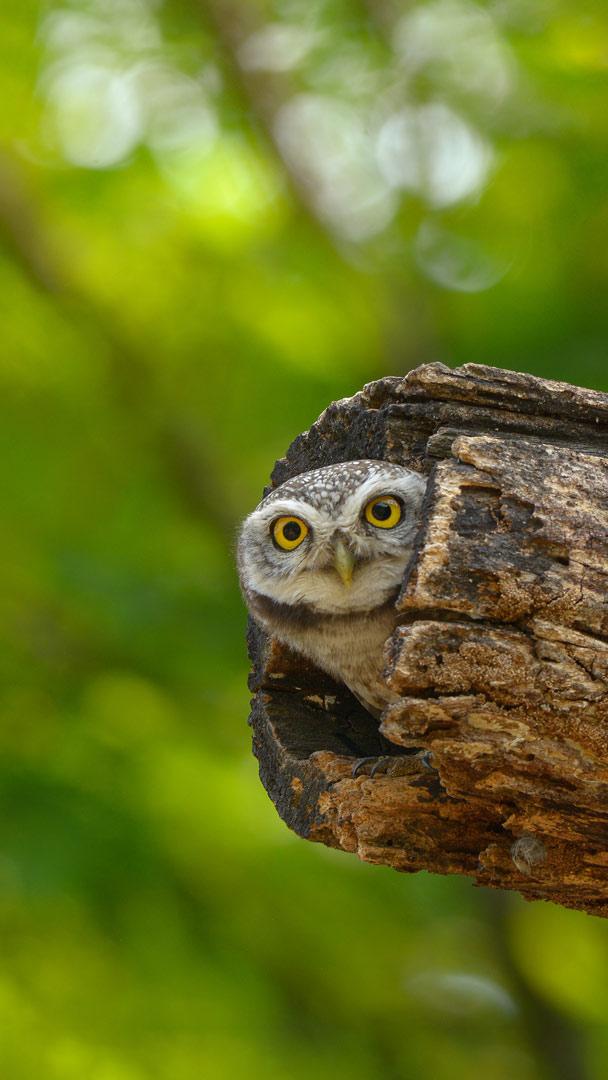 Um grande olhar para uma coruja Coruja-pintada, Bangcoc, Tailândia (© Tfilm/Getty Images)