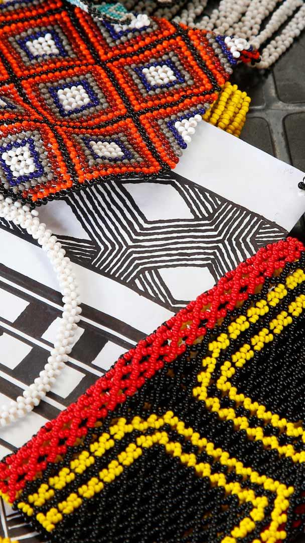 As cores do nosso folclore Artesanato indígena brasileiro exposto para venda em feira ao ar livre (© Ricardo Lima/Getty Images)