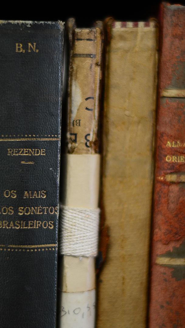 Riqueza e diversidade linguística Vista de livros antigos na Biblioteca Nacional Brasileira no Rio de Janeiro (© CHRISTOPHE SIMON/AFP via Getty Images)