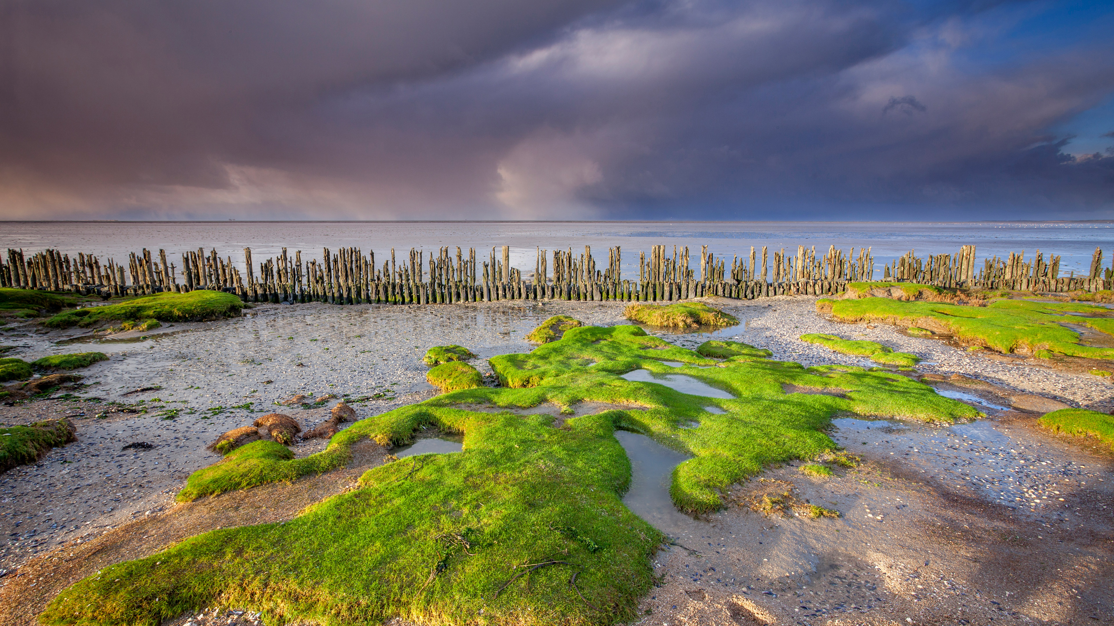 Entre o céu, as águas e os lamaçais Costa do Mar Frísio, perto de Moddergat, Friesland, Países Baixos (© Ron ter Burg/Minden Pictures)