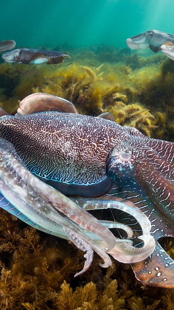 A arte de desaparecer Chocos-gigantes no Golfo de Spencer, perto de Whyalla, Austrália Meridional (© Gary Bell/Minden Pictures)