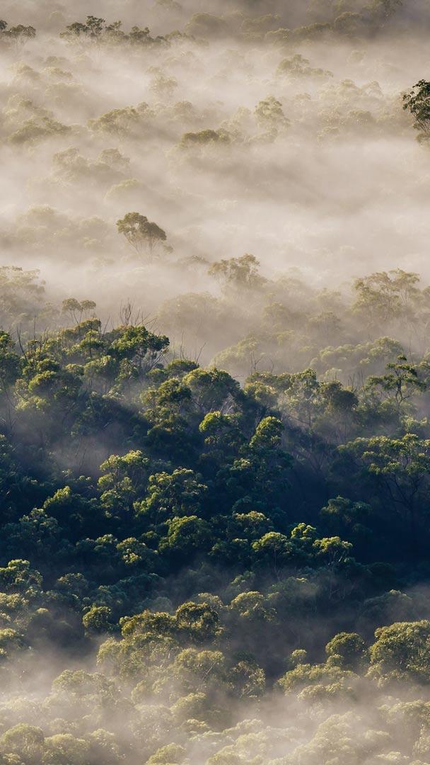 Uma vista eucaliptástica Árvores de eucalipto, Vale Megalong, Parque Nacional das Blue Moutains, Nova Gales do Sul, Austrália (© Andrew Peacock/TANDEM Stills + Motion)