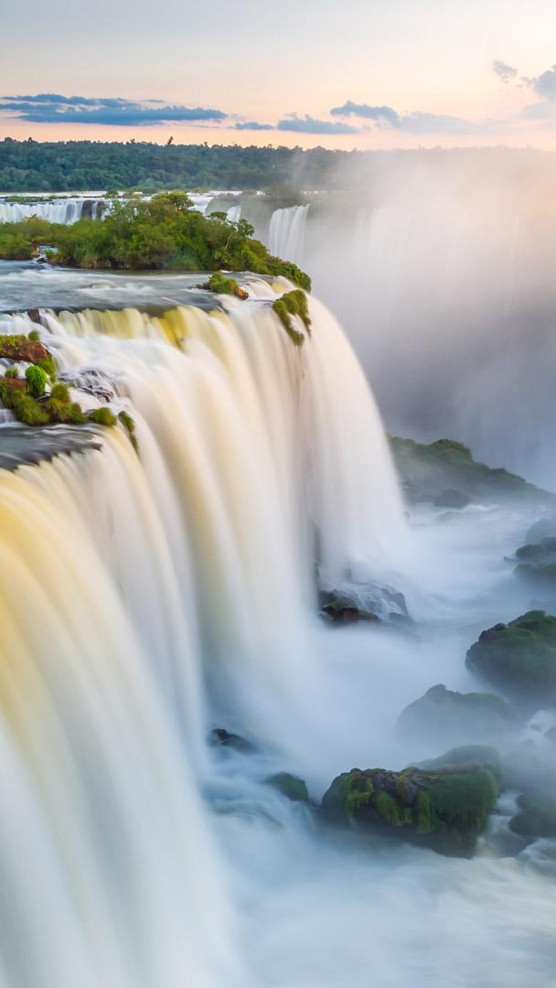 Quedas ecoam entre nações Cartaratas do Iguaçu vistas de Foz do Iguaçu, Paraná, Brasil (© Stockfoto)