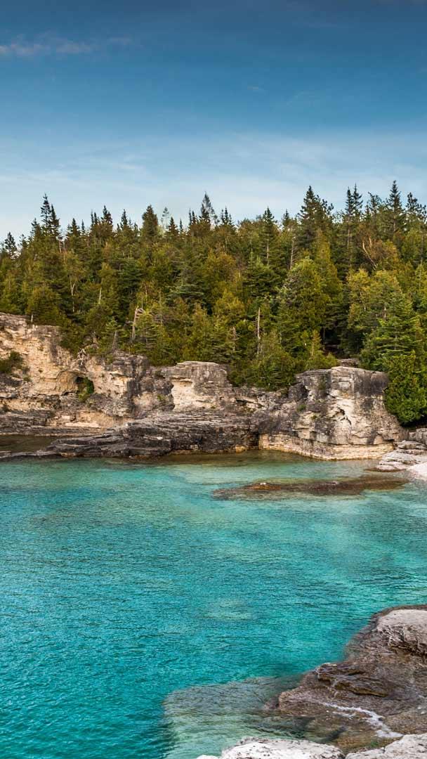 Penhascos, cavernas e águas cristalinas Indian Head Cove, Parque Nacional da Península Bruce, Ontário, Canadá (© Maurice Prokaziuk/Getty Images)