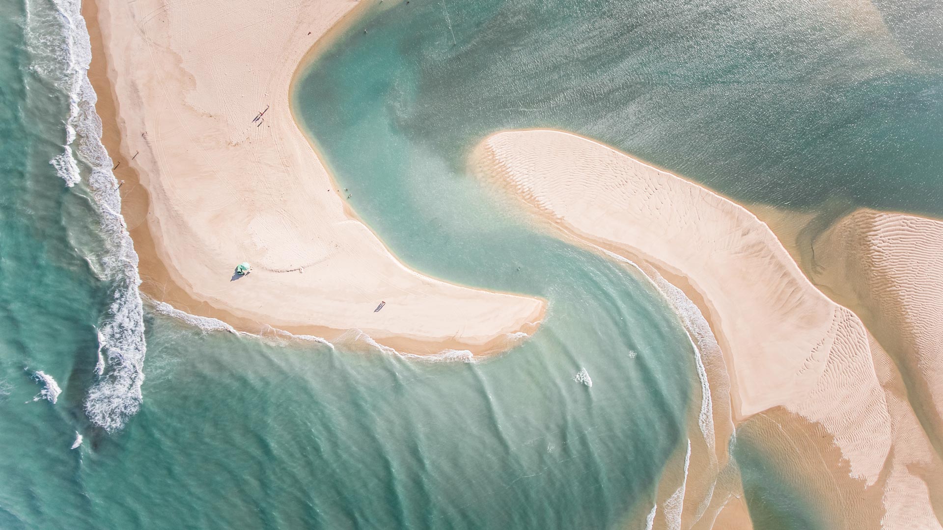 Um desenho feito de vento e tempo Vista aérea de praia em Jericoacoara, no Ceará (© AmazingAerialAgency/Adobe Stock)
