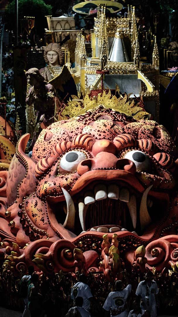 A alegria que não cabe nas ruas Escola de samba São Clemente no Sambódromo do Rio de Janeiro, 2016 (© YASUYOSHI CHIBA/AFP via Getty Images)