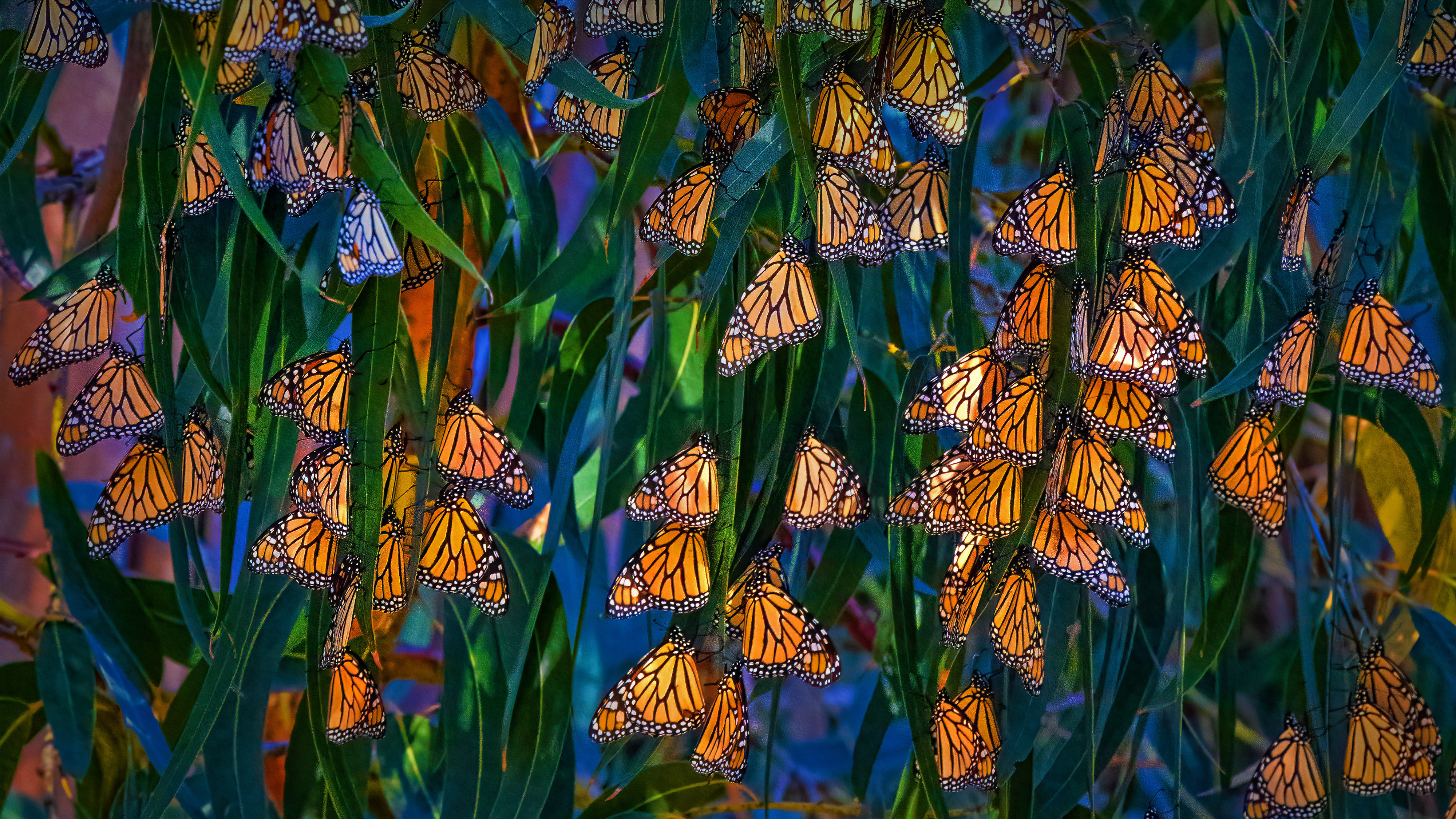 What are these colourful insects? Monarch butterflies at Pismo Beach, California, USA (© Mimi Ditchie/Getty Images)