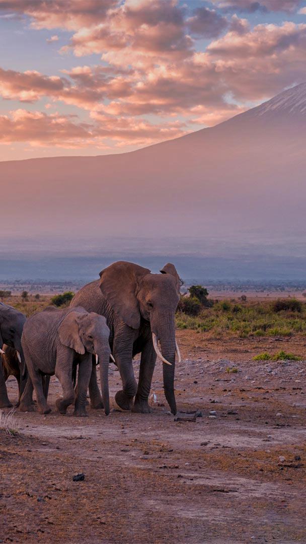 Trunks packed for road Elephants near Mount Kilimanjaro, Amboseli National Park, Kenya (© Diana Robinson Photography/Getty Images)