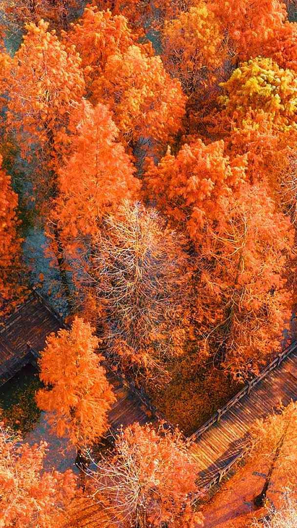 树树皆秋色 航拍中国江苏省常州翠竹公园 (© Xu Changyu/Getty images)