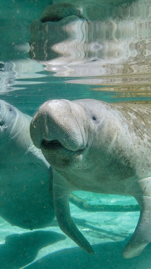 快节奏时代,别忘了慢下来 海牛妈妈和幼崽,水晶河,佛罗里达州,美国 (© Gregory Sweeney/Getty Images)