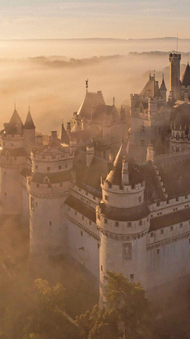 日出时分的古老城堡 皮埃尔丰城堡,皮卡第大区,法国 (© Hemis/Alamy)