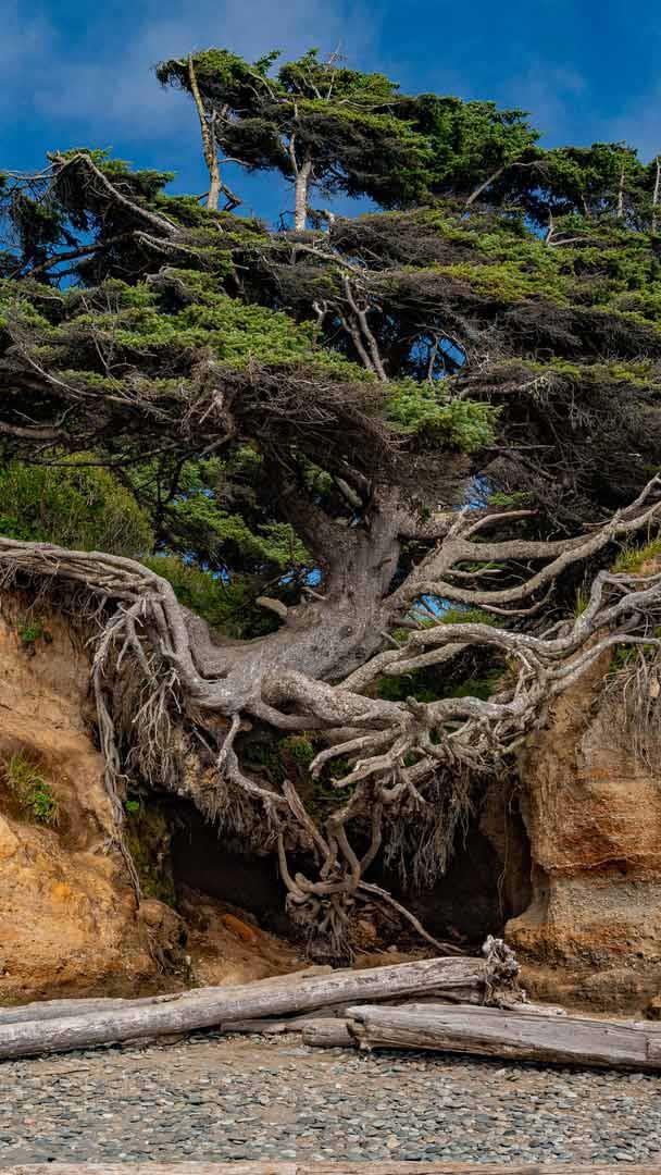 这棵树是个快乐的家伙! 卡拉洛奇树,又名生命之树,卡拉洛奇海滩,奥林匹克国家公园,华盛顿州,美国 (© Abbie Warnock-Matthews/Shutterstock)