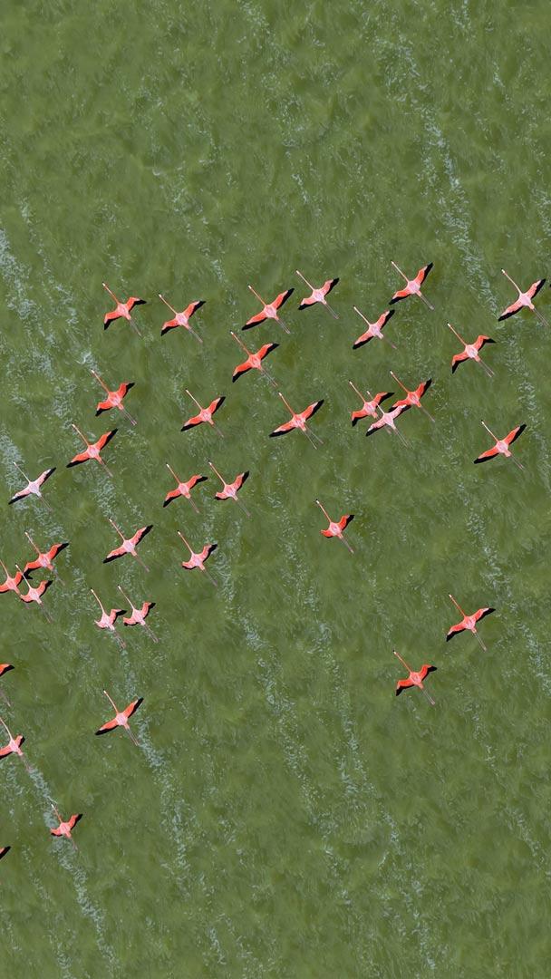 飞行中的火烈鸟 加勒比火烈鸟,尤卡坦半岛,墨西哥 (© Claudio Contreras/NPL/Minden Pictures)