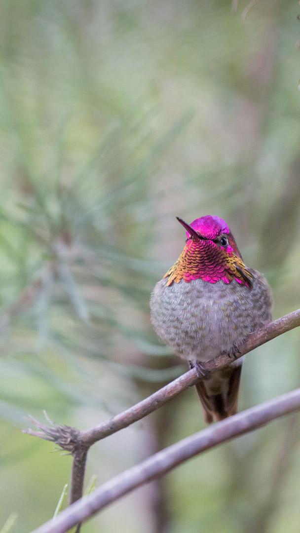 Der Annakolibri, benannt nach Anna Masséna, Herzogin von Rivoli, erstrahlt mit seinem grün funkelnden Federkleid und seiner leuchtend rosafarbenen Kehle und ist der Star auf unserem heutigen Bild. Er ist eine von schätzungsweise 366 Kolibriarten und die häufigste Art an der Westküste Nordamerikas. Mit einer Flügelgeschwindigkeit von atemberaubenden 80 Schlägen pro Sekunde können sie wie Hubschrauber an einer Stelle schweben und sich sogar rückwärts bewegen. Diese kleinen Energiebündel, die sich von Blüte zu Blüte tummeln, haben ein beeindruckendes Gedächtnis für jede besuchte Blume und ihr Nektarangebot.
