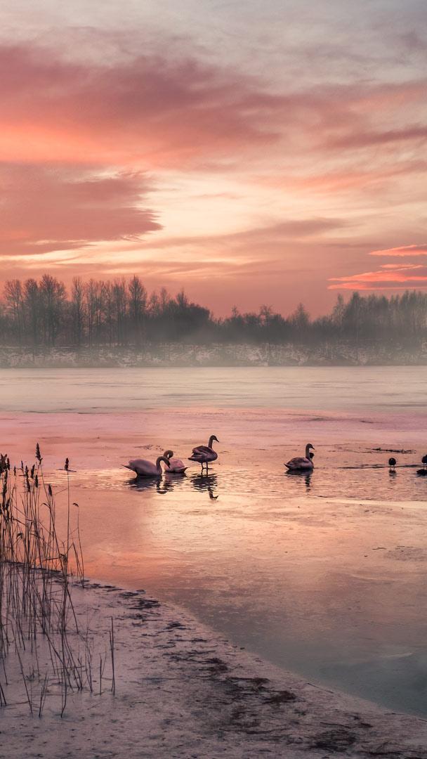 Stellen Sie sich vor, Sie stehen an einem zugefrorenen See in Deutschland, während die ersten Strahlen der Morgensonne den Horizont erhellen. Sie können sich entspannen, im Einklang mit der Natur beobachten, wie das Eis wie Millionen kleiner Diamanten glitzert. Erholung, Entspannung und Entschleunigung sind unser heutiges Motto. Für Herz und Seele ist es wichtig, manchmal innezuhalten und die Welt zu betrachten, als stünde sie still. Die kalte Luft ist erfrischend und die Aussicht atemberaubend. Ein perfekter Moment, um tief durchzuatmen und die Ruhe zu genießen. Ein solcher Morgen erinnert uns daran, wie schön und friedlich die Natur sein kann. Wer einmal die Gelegenheit hat, einen zugefrorenen See bei Sonnenaufgang zu erleben, sollte sich diesen magischen Moment nicht entgehen lassen.