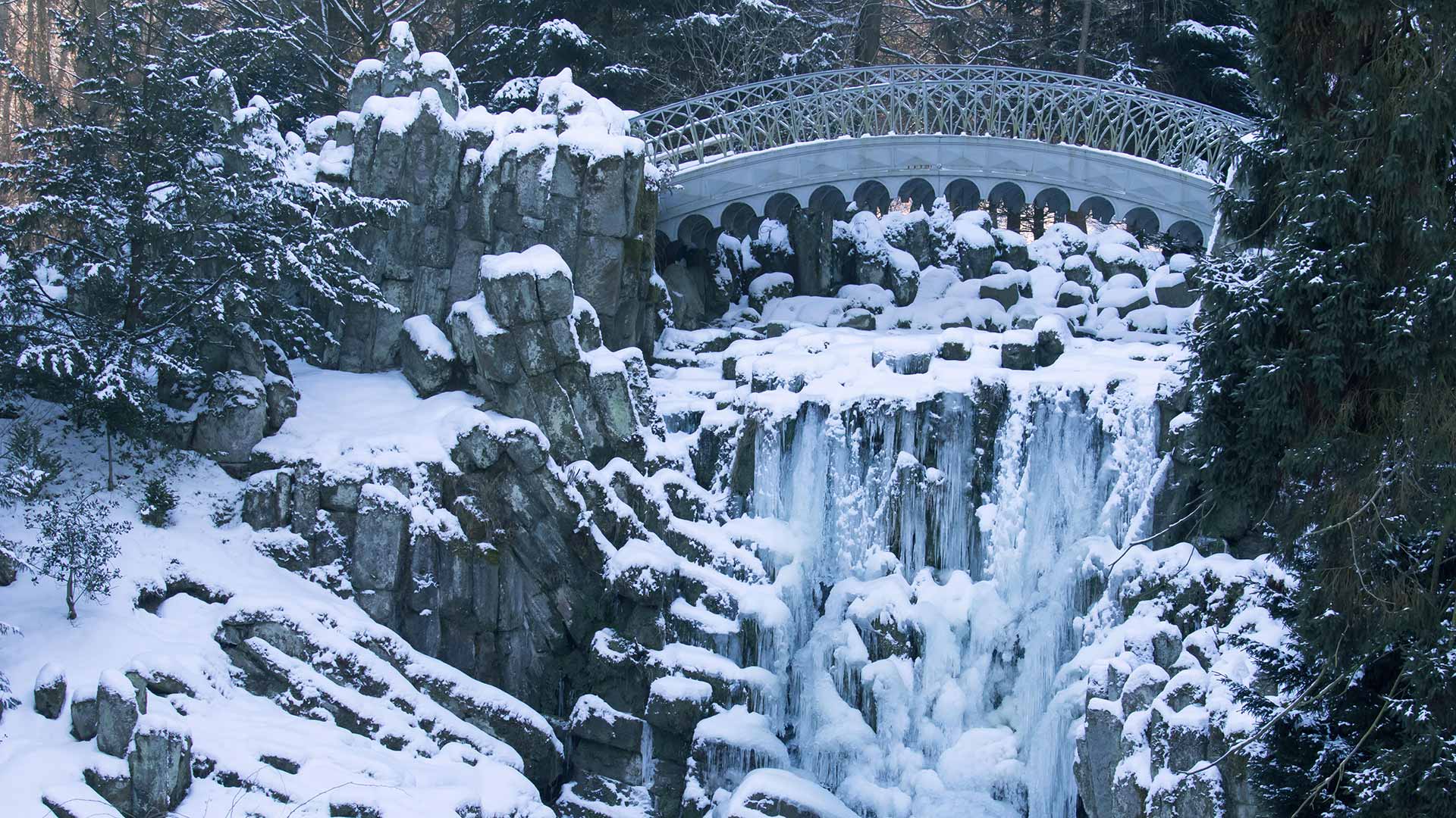 Teil eines Welterbes Teufelsbrücke im Bergpark Wilhelmshöhe, UNESCO-Welterbestätte, Kassel, Hessen (© Wilfried Martin/Alamy)