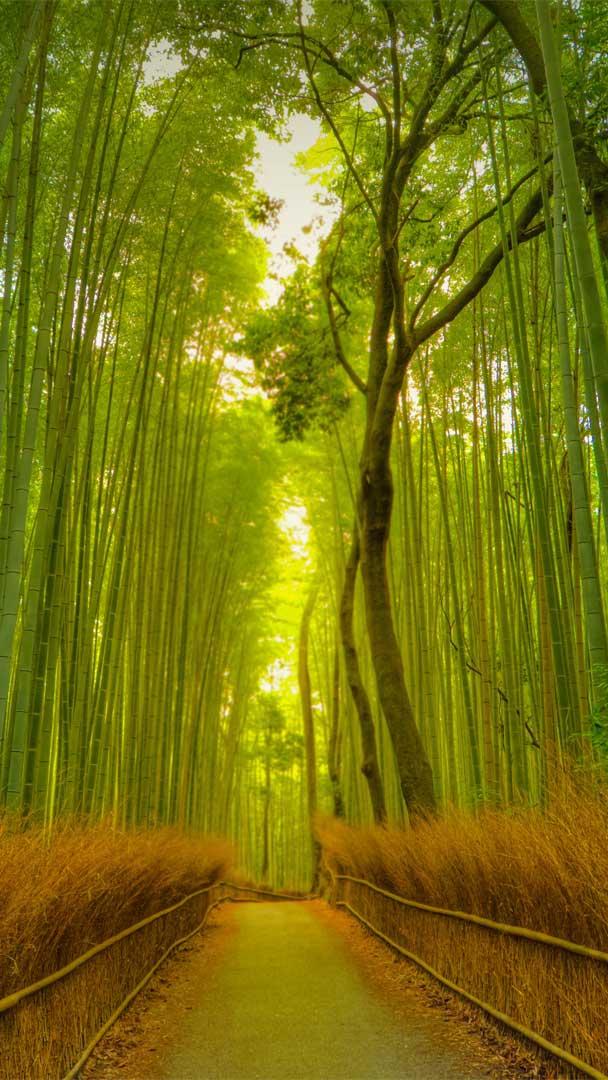 Japans „singender“ Wald Fußweg im Bambuswald von Arashiyama, Kyoto, Japan (© Razvan Ciuca/Getty Images)