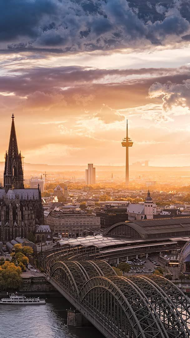 Eine Stadt im Spielefieber Skyline von Köln im Sonnenuntergang, Nordrhein-Westfalen (© SnapRapid/Offset/Shutterstock)