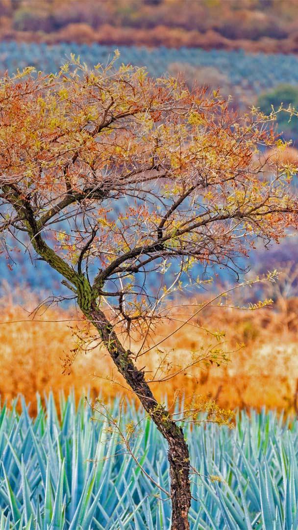 Diese Sukkulente ist hier so gut wie Gold Baum inmitten Blauer Agaven in der Tequila-Region nahe Atotonilco, Jalisco, Mexiko (© Brian Overcast/Alamy)