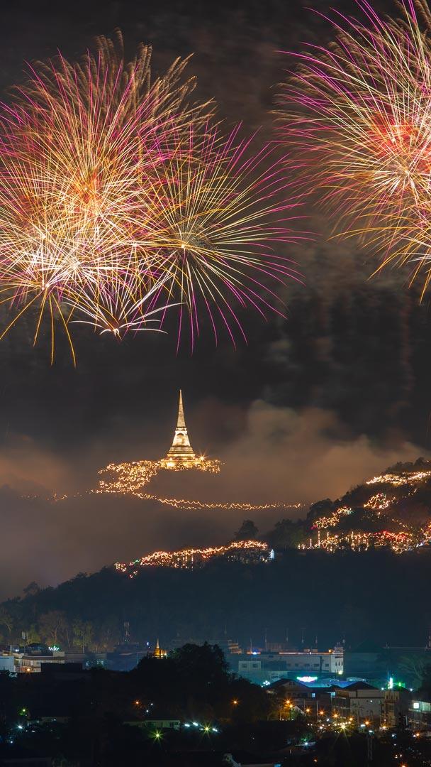Es ist Zeit für den finalen Countdown! In vielen Ländern wird heute Abend Silvester gefeiert, um das alte Jahr zu verabschieden und das neue Jahr zu begrüßen. Die Silvester-Bräuche in einigen Ländern sind besonders kreativ. Hierzulande wird die Zukunft mit Bleigießen vorausgesagt, in Dänemark wird Geschirr zerschlagen, in Spanien werden die Münder mit Weintrauben gefüllt und in Griechenland werden Zwiebeln vor die Tür gehängt. Diejenigen, die in Thailand feiern, suchen ihr Glück in einem Tempel oder sehen sich das Feuerwerk an, das den heiligen Hügel im Geschichtspark Phra Nakhon Khiri, den Sie auf dem heutigen Foto sehen können, erleuchtet. Wo auch immer Sie feiern, rutschen Sie gut rein. Bis zum nächsten Jahr!