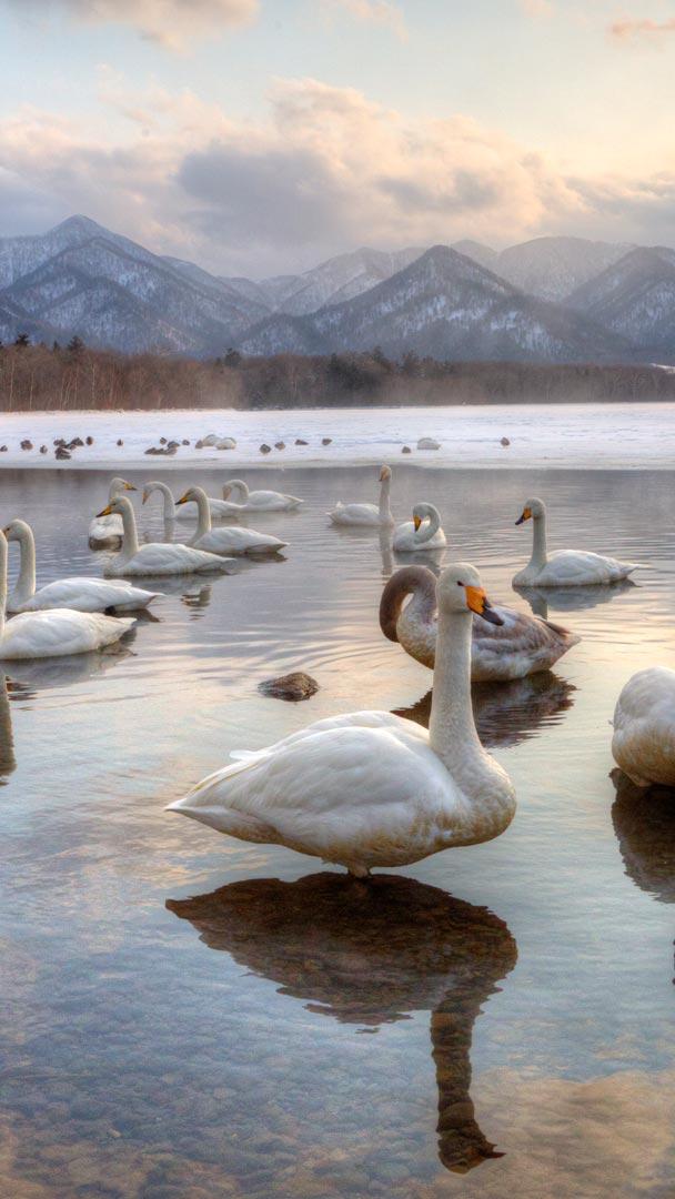 En las aguas cristalinas del lago Kussharo, en el lejano Japón, nadan los cisnes cantores, majestuosas aves de plumaje blanco que parecen esculpidas en la nieve. Con sus picos de tonos amarillos y negros, reflejan la belleza de la naturaleza en el espejo del lago, como pinceladas en un lienzo de azules infinitos. Son los cisnes cantones, originarios de Europa y Asia, célebres por su resonante canto, que les da nombre.