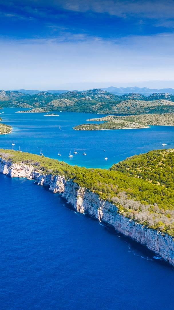 Descubre el Parque Natural de Telašćica, un tesoro en la costa adriática de Croacia, ubicado en las costas sureñas de la isla Dugi Otok y rodeado por un hermoso archipiélago. Los acantilados de Telašćica alcanzan 160 metros de altura y se extienden por más de 10 kilómetros, ofreciendo panoramas tan impresionantes como los del Gran Cañón, pero adornados con playas de aguas cristalinas. Reconocido como uno de los refugios más seguros del Adriático, este puerto natural esconde 25 playas vírgenes listas para ser descubiertas.