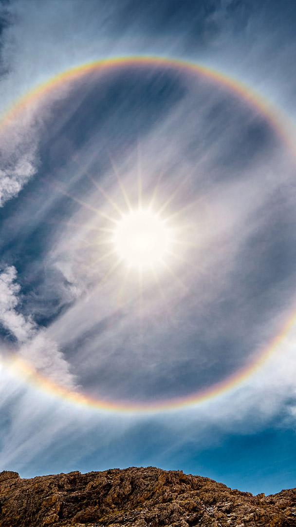 Lumière divine Halo solaire au-dessus du lac d’Antermoia dans les Dolomites, Italie (© Walter Donega/Getty Images)