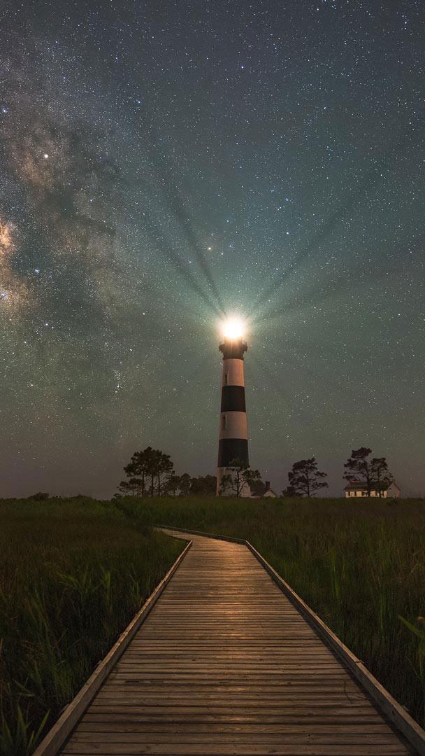 Une lumière parmi les étoiles Phare de Bodie Island, Nags Head, Caroline du Nord, États-Unis (© Michael Ver Sprill/Getty Images)