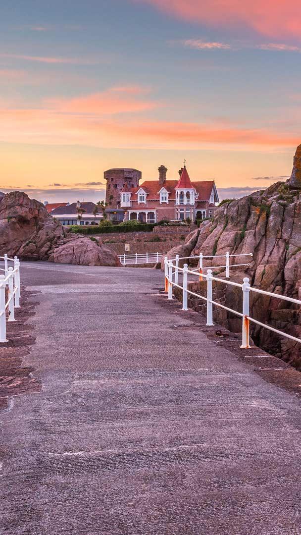 Explorez Jersey, l"île aux charmes nordiques nichée au large de la Normandie. Le port pittoresque de La Rocque offre un spectacle divin : une plage de sable blanc bordée d"une passerelle plongeant dans l"eau. Ces côtes témoignent de plus de 420 millions d"années d"histoire à travers des roches aux couleurs et textures étonnantes.