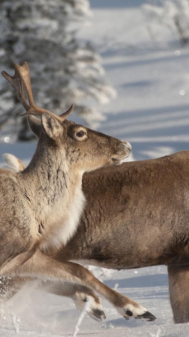 Des rennes bien fatigués après un si long voyage dans le ciel ! Depuis que Clément Clarke Moore les a désignés comme les assistants officiels du Père Noël dans son poème de 1823 intitulé « La nuit avant Noël », ces animaux participent avec enthousiasme aux festivités. Le choix du Père Noël s"explique par leurs caractéristiques robustes, comme leur double couche de fourrure dense et leurs yeux adaptés à différentes longueurs d"onde lumineuses.