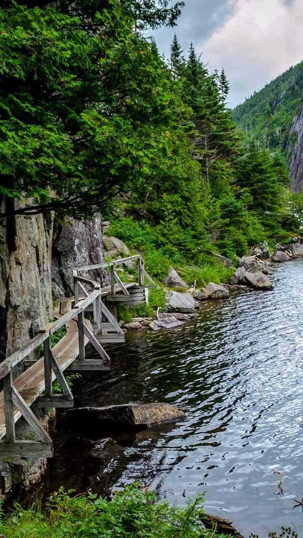 There"s no easing into the wild here—the Avalanche Lake trail carves a bold path through rock scrambles, narrow ledges and alpine serenity. Tucked away in the Adirondack High Peaks in New York, United States, this less-than-a-square-kilometres alpine lake sits at over 800 metres between Mount Colden and Avalanche Mountain. Shaped by ancient glaciers, the lake is framed by dramatic cliffs and rugged terrain that echo its icy origins. Its most striking feature is the Trap Dike—an over 300-metre rock canyon flanked by steep walls, making the lake one of the most awe-inspiring sights in the Adirondacks. Massive avalanches carved these cliffs, leaving behind the dramatic landscape that gave Avalanche Lake its name.