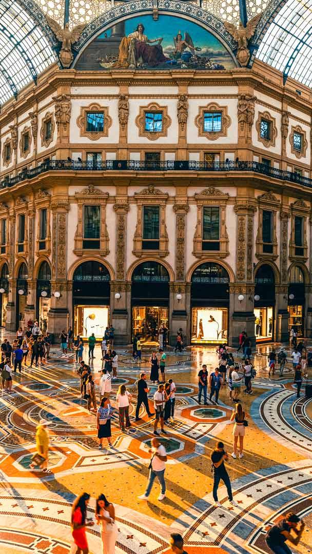 La Capitale della Moda Galleria Vittorio Emanuele II al tramonto, Milano, Lombardia (© Marco Bottigelli/Moment/Getty Images)