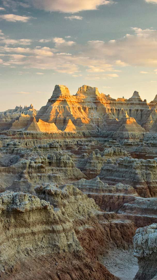 Sculture del Tempo Tramonto sul Parco Nazionale di Badlands, South Dakota, USA (© Petr Bednarik/Danita Delimont/Alamy Stock Photo)