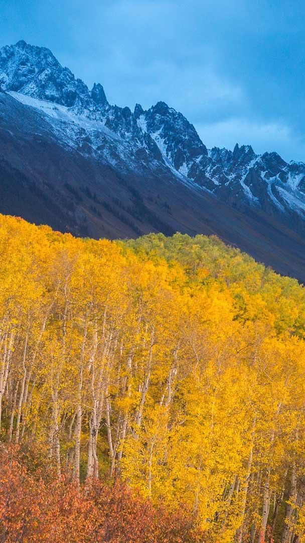 Oro vero Colori autunnali ai piedi del Monte Sneffels vicino a Ridgway, Colorado, USA (© Grant Ordelheide/TANDEM Stills + Motion)