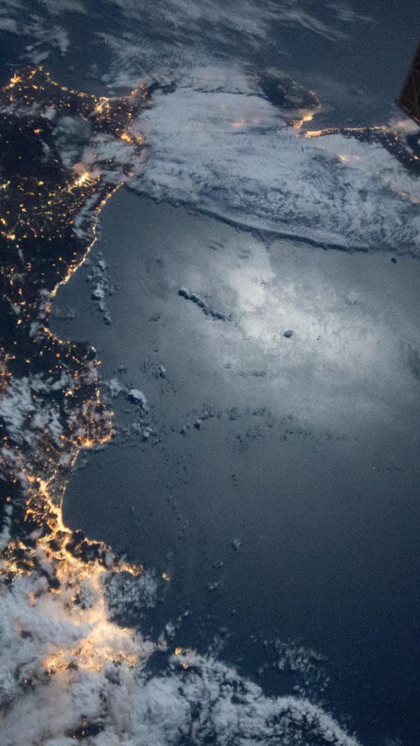 Radici spaziali? Volo della Stazione Spaziale sopra la punta meridionale dellItalia (© NG Images/Alamy)