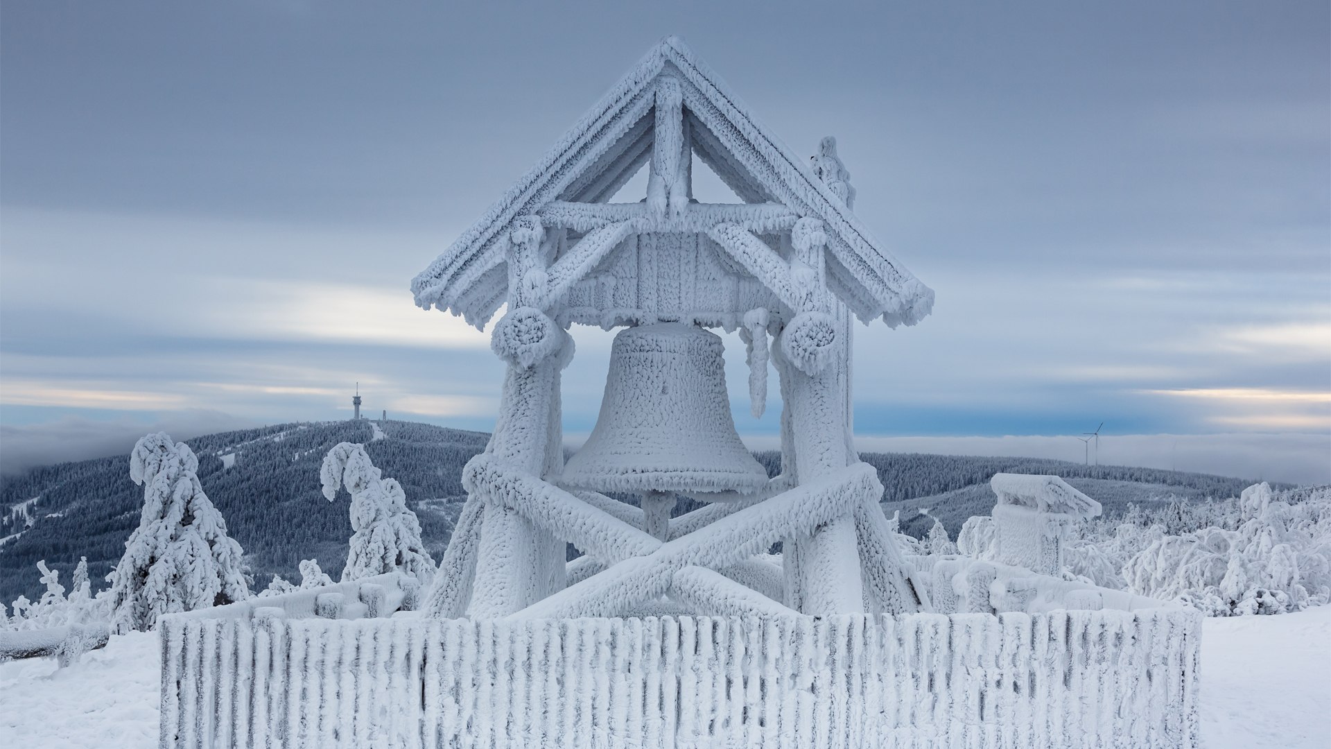 Una campana per la pace Campana della pace sulla cima del Fichtelberg, Sassonia, Germania (© Jan Drahokoupil/Getty Images)