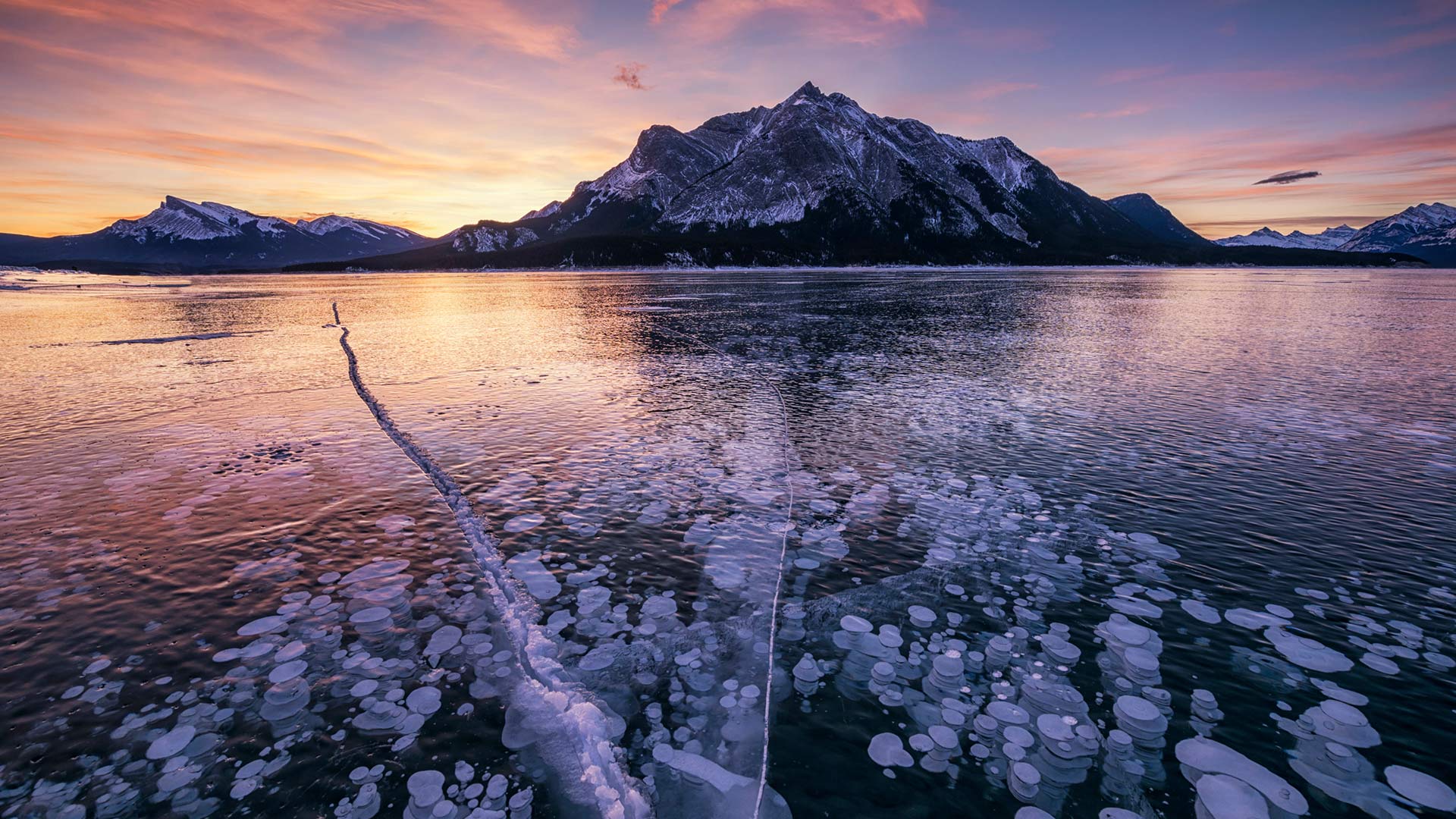 Il panoramico Mount Michener Il Mount Michener e il lago ghiacciato Abraham in Alberta, Canada (© Tom Mackie/plainpicture)
