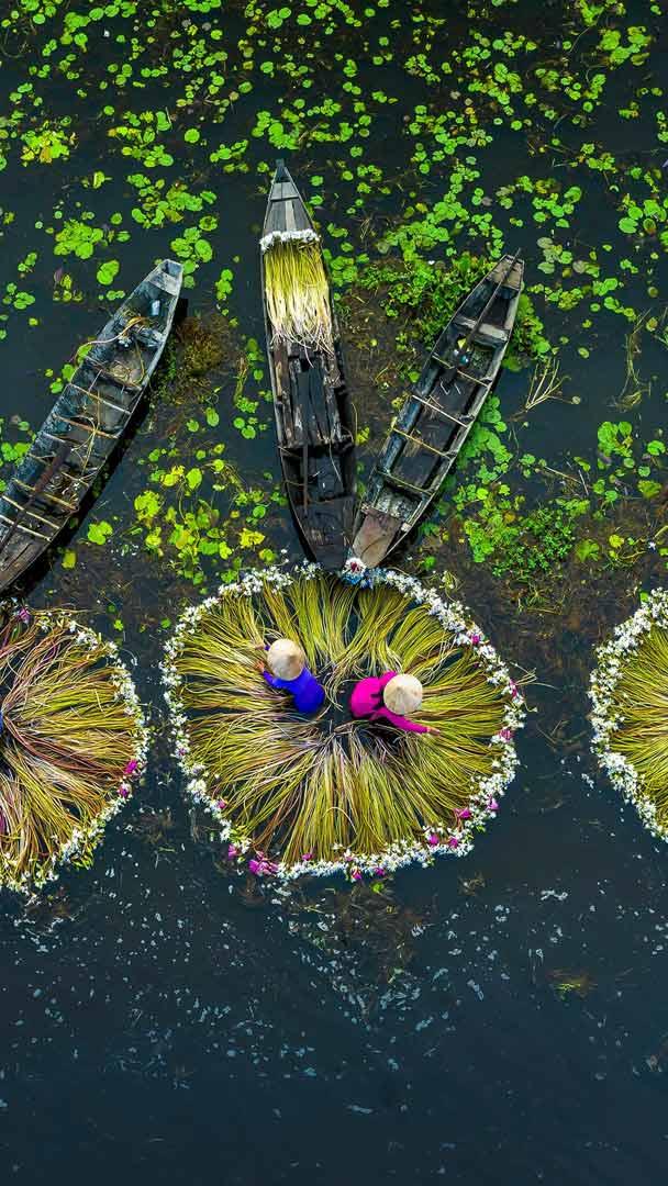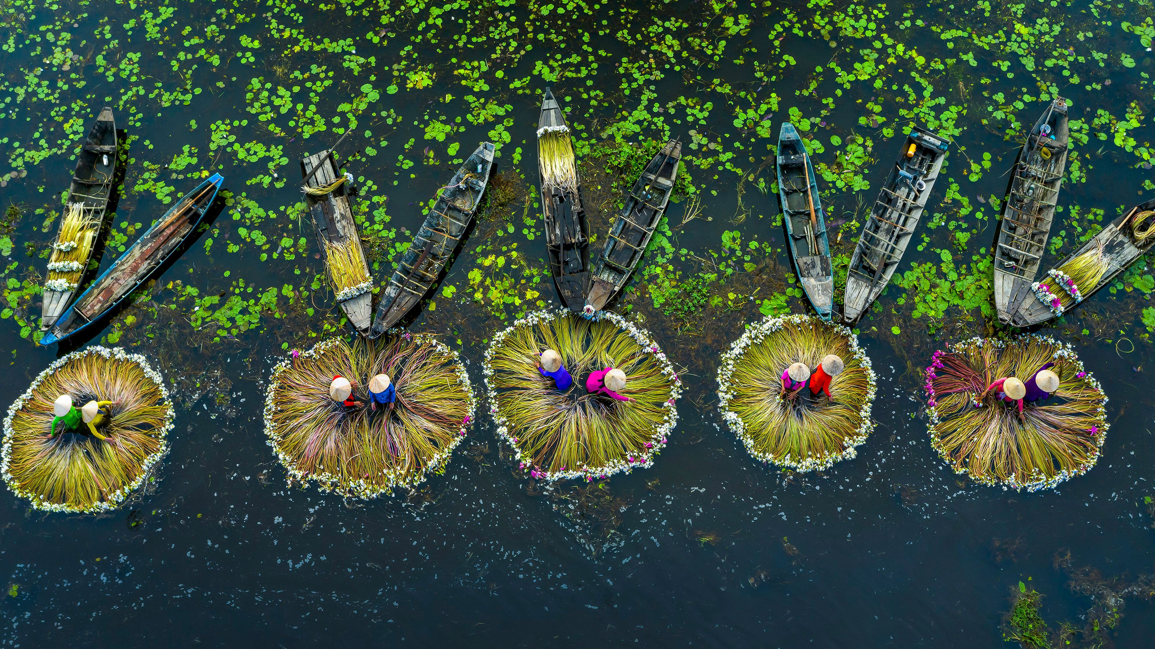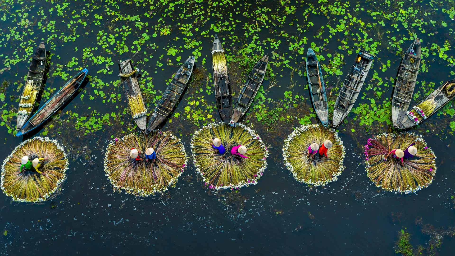Il lavoro di squadra rende il sogno possibile Raccolta di ninfee, Delta del fiume Mekong, Long An, Vietnam (© Khanh Phan/Solent News/Shutterstock)