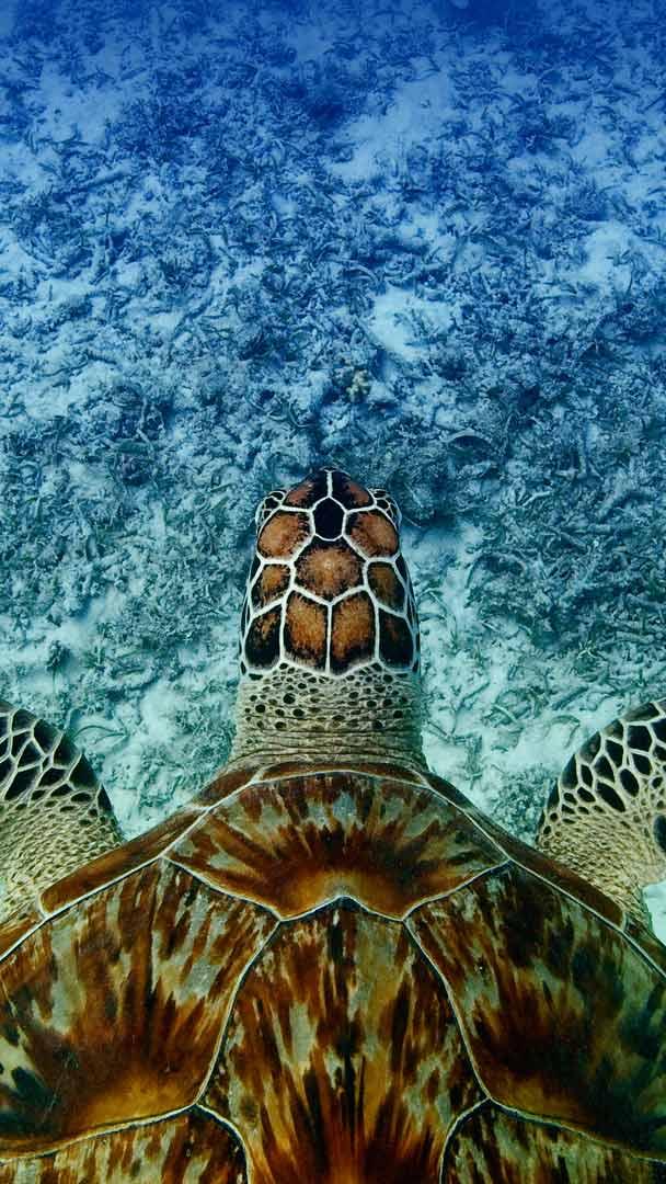 Una nuotatina nelle acque azzurre Una tartaruga embricata che nuota vicino ad Akajima, Okinawa, Giappone (© Robert Mallon/Getty Images)