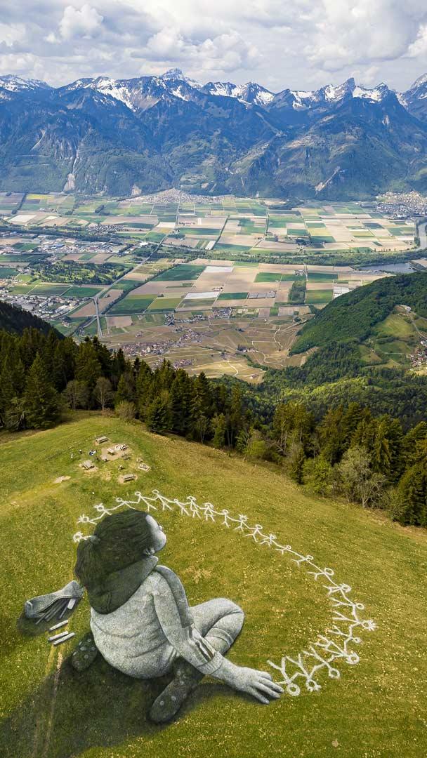 Grandi opere e sogni infiniti Dipinto gigante di land art “Beyond Crisis” di Saype, Leysin, Svizzera (© VALENTIN FLAURAUD/EPA-EFE/Shutterstock)