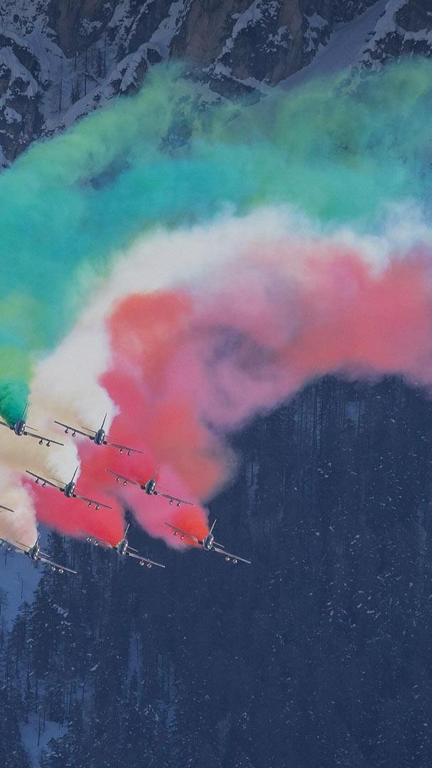 Vola, il Tricolore vola... Frecce Tricolori in formazione acrobatica sulle dolomiti italiane, Cortina dAmpezzo, Veneto (© Anze Furlan/Alamy Stock Photo)