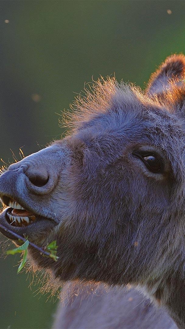 ロバにとって愉快な一日 桜の小枝を食べている家畜のロバ (© Juniors Bildarchiv GmbH/Alamy)
