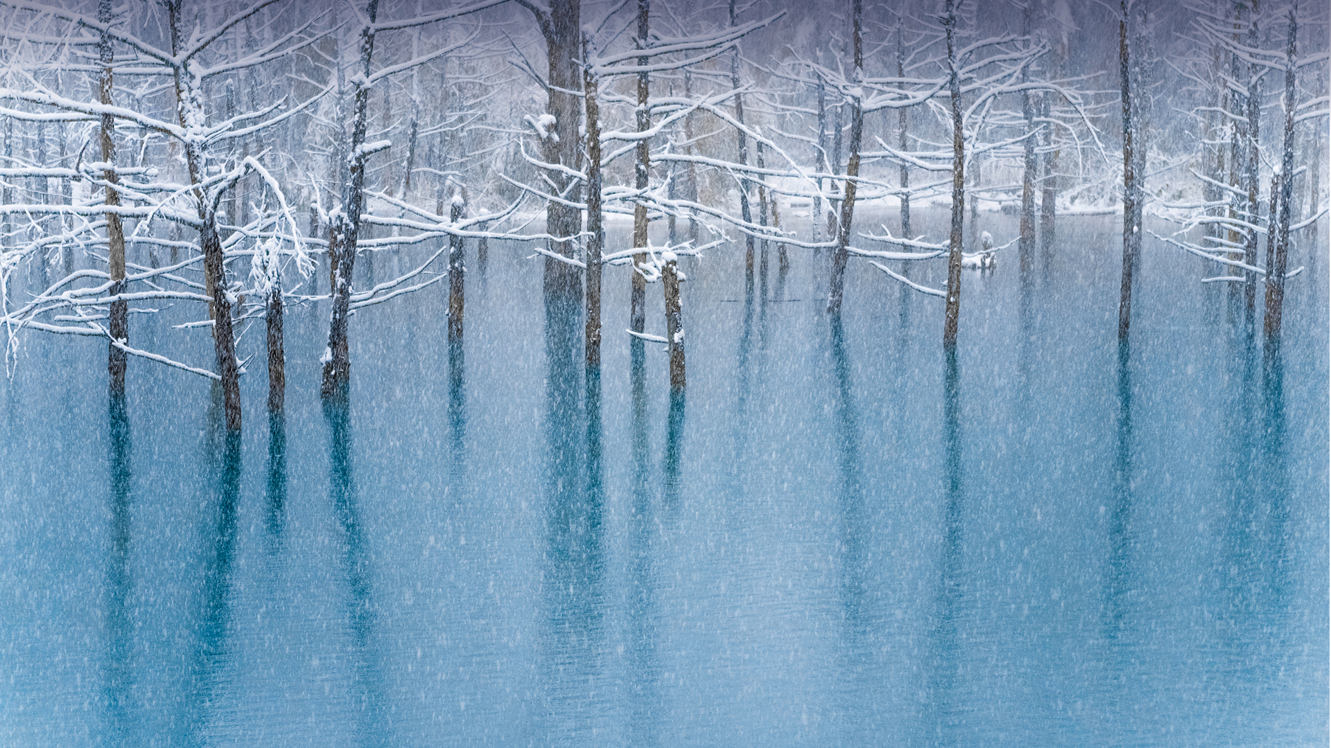 今日は「大雪」 青い池, 北海道 (© Haruna/Getty Images)