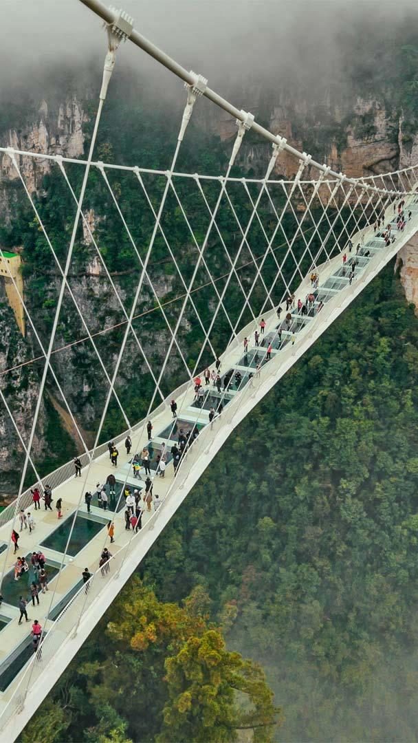 中国の世界一高くて長いガラス橋 張家界大峡谷玻璃大橋, 中国 湖南省 (© MediaProduction/Getty Images)