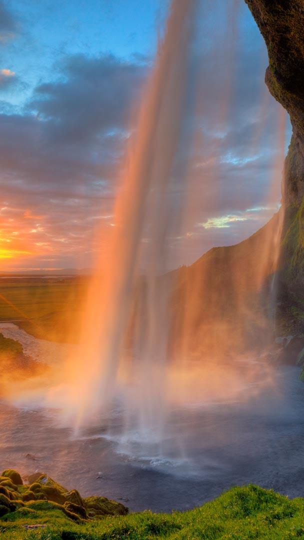 Experience the magic of the summer solstice at Seljalandsfoss waterfall in Iceland. Today, the Northern Hemisphere celebrates the longest day of the year, when the sun reaches its highest point in the sky. Seljalandsfoss, located along Iceland"s South Coast, offers a stunning backdrop for this astronomical event. The 60-metre waterfall drops from cliffs that once marked the country"s coastline. The cascading water is part of the Seljalandsa River, originating from the volcanic glacier Eyjafjallajökull. The volcano under the icecap last erupted in 2010, causing disruption for locals and air traffic.