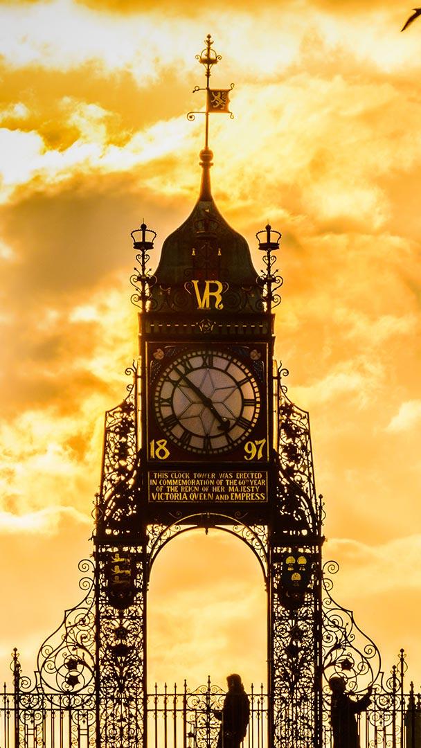 The sun sets on British Summer Time The sun sets over the Eastgate Clock in Chester. (© ZinCat/Getty Images)