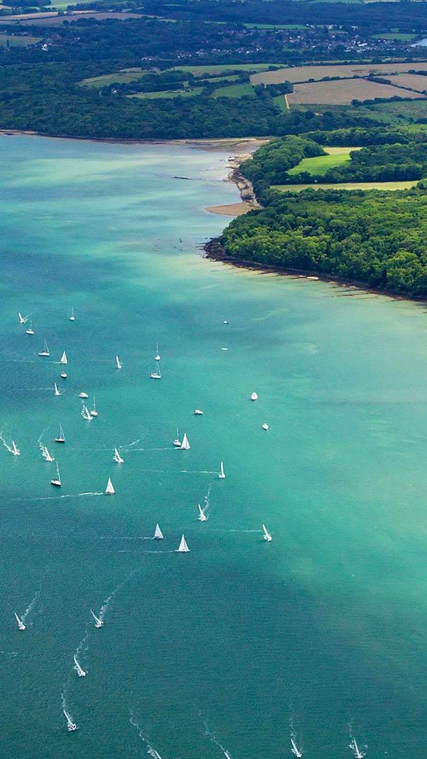 Race to the finish Aerial photo of yachts racing in Cowes Week on the Solent, Isle of Wight, Hampshire (© Peter Barritt/Alamy)