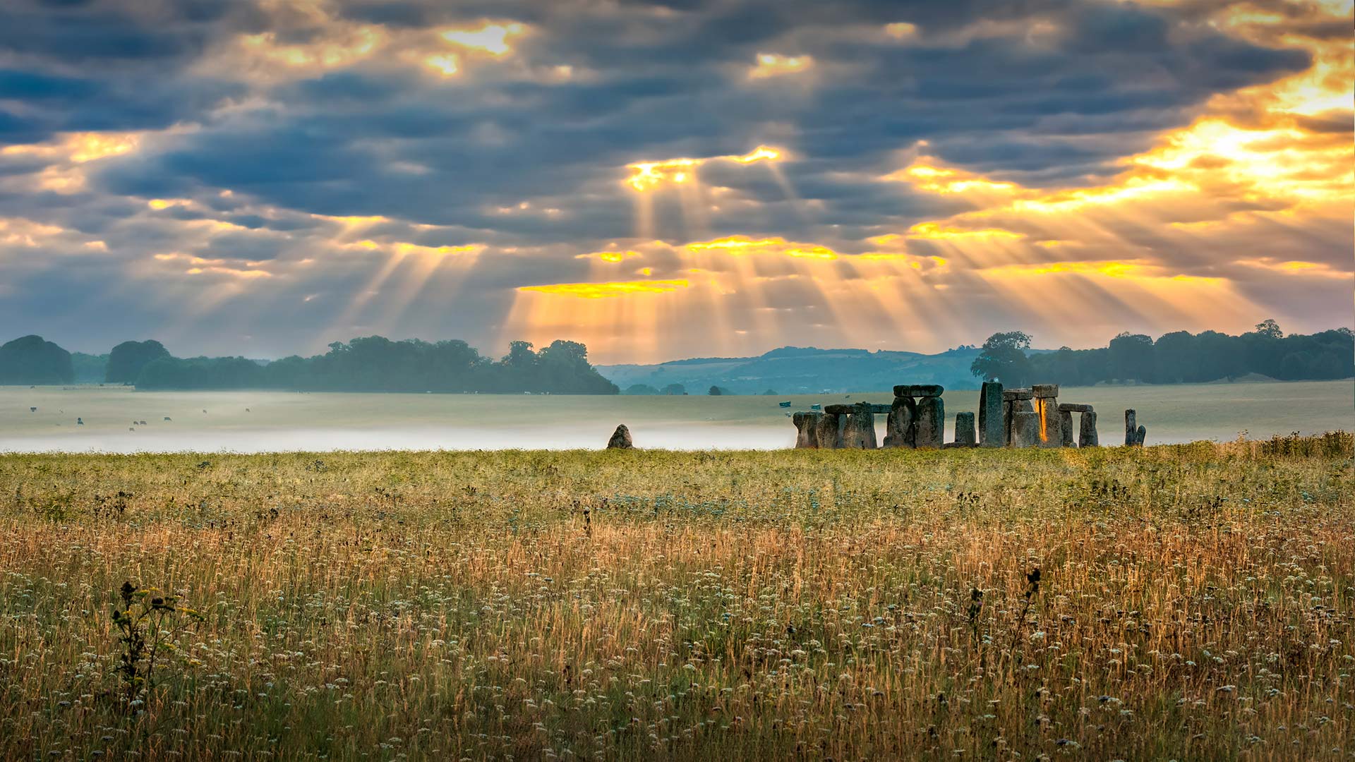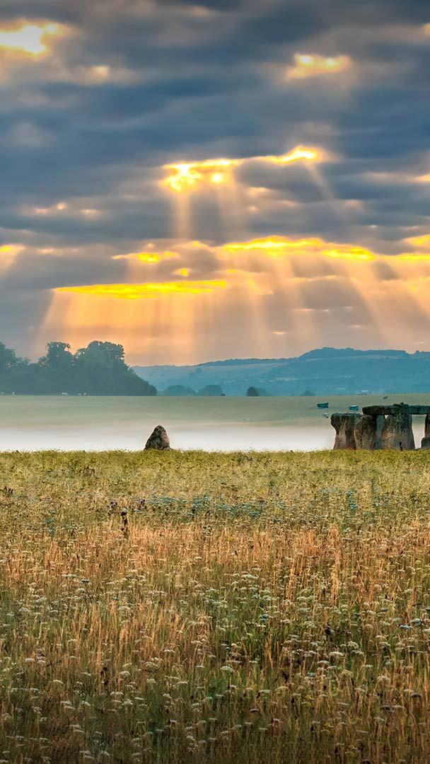 Stones on the solstice Cloudy sunrise over Stonehenge - prehistoric megalith monument arranged in circle. (© Valery Egorov/Getty Images)